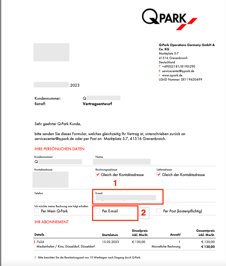 - Dauerpark: Trage Moovster ID als E-Mail-Adresse im Vertrag ein und wähle Rechnung per E-Mail.