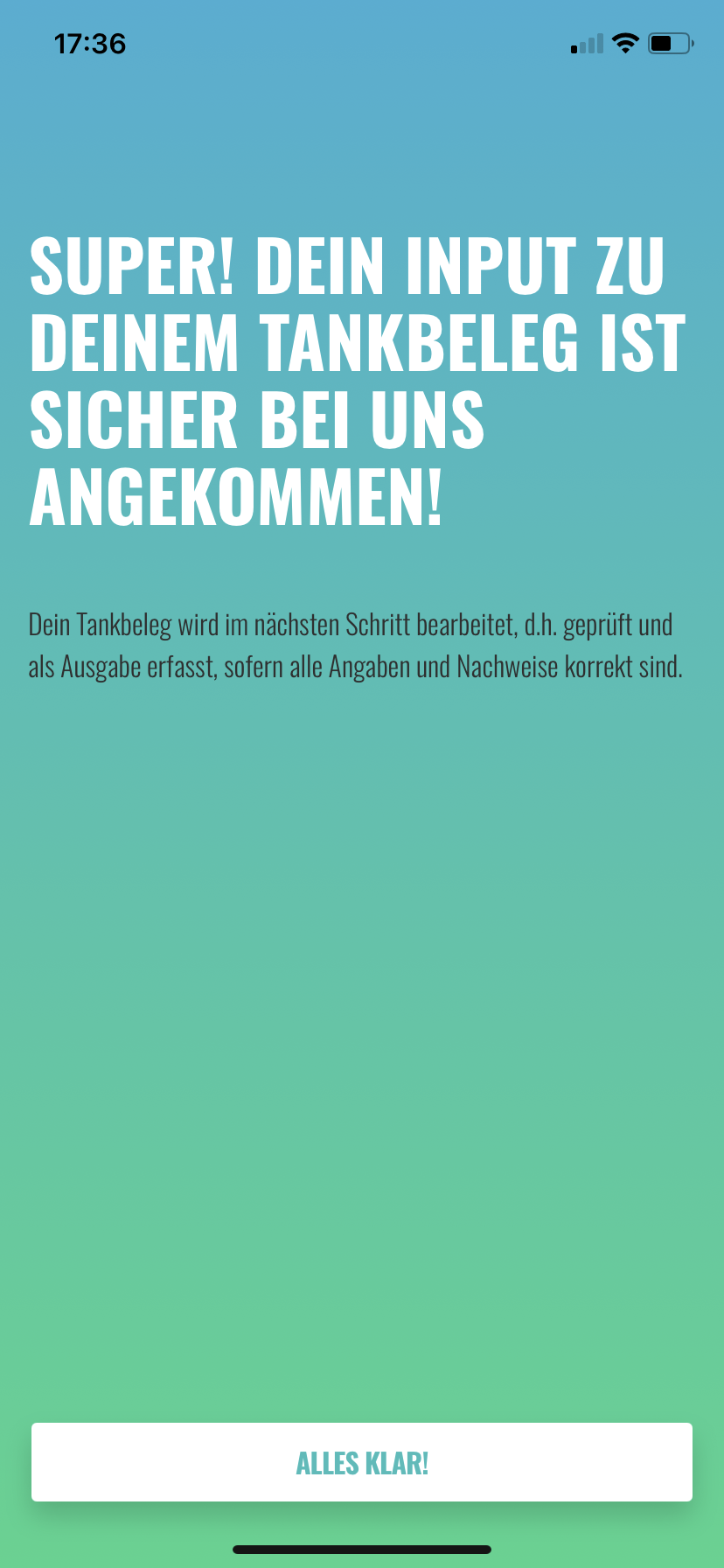 - Das Foto oder die PDF des Tankbeleges muss gut lesbar sein