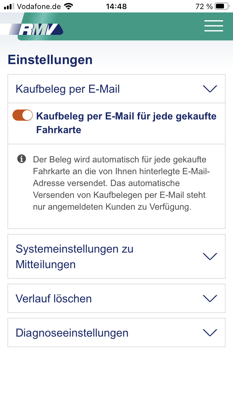 Voi versendet keine automatischen Mails. Es ist jedoch möglich in der App eine Rechnung als pdf herunterzuladen. Diese muss dann manuell an deine Moovster ID gesendet werden.